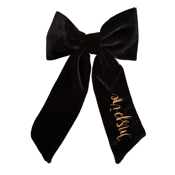 Black velvet bow with Inspire beautifully embroidered in gold stitching.